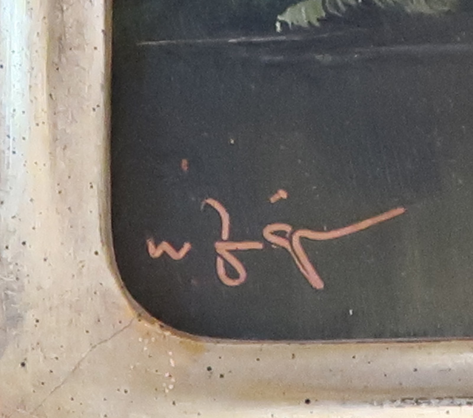 "Spaziergänger am See", Öl auf Hartfaser, unleserlich signiert, ca.29, 5x23, 5cm