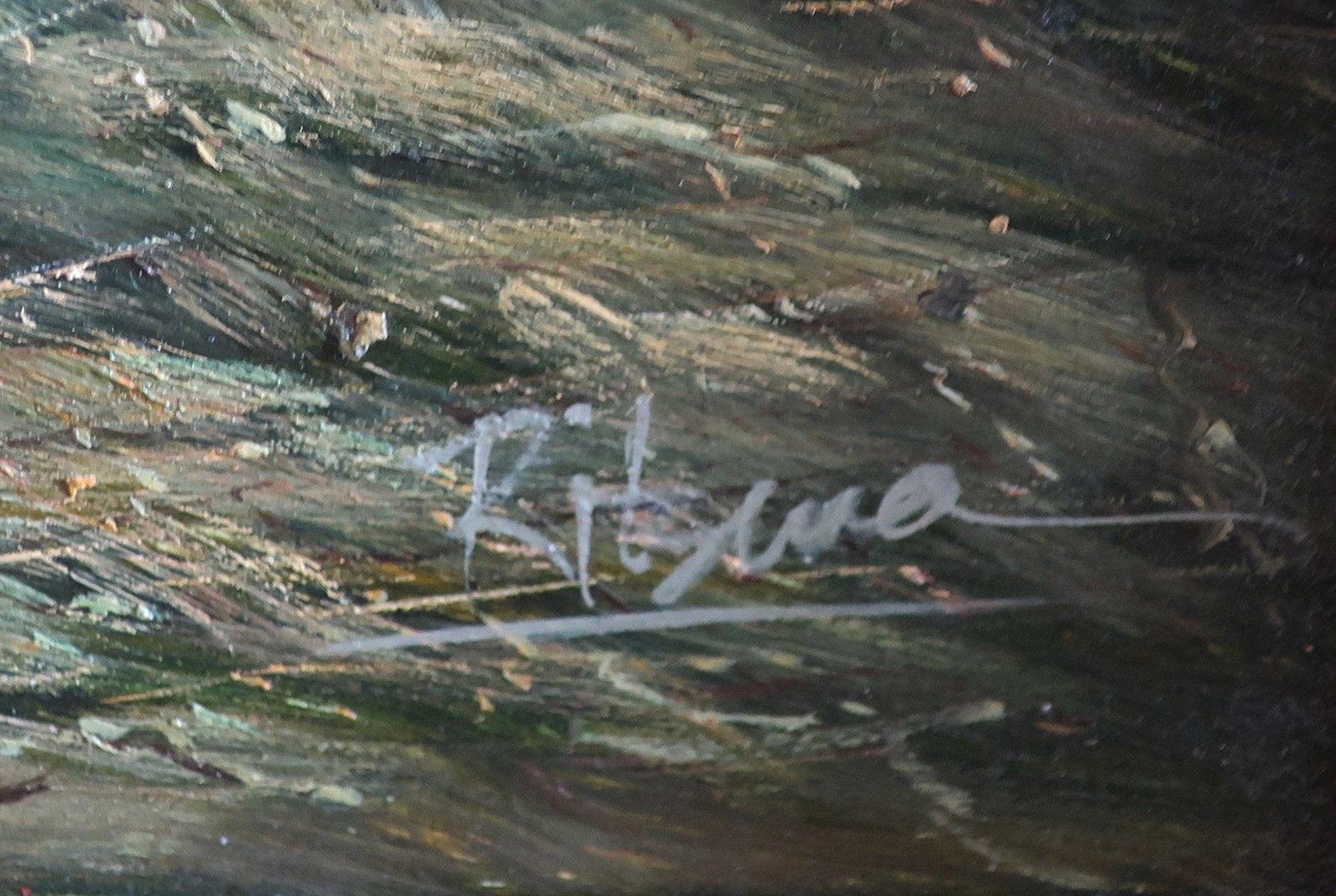 "Hühnerhof", Öl auf Holz, unleserlich signiert, ca.32, 5x40cm