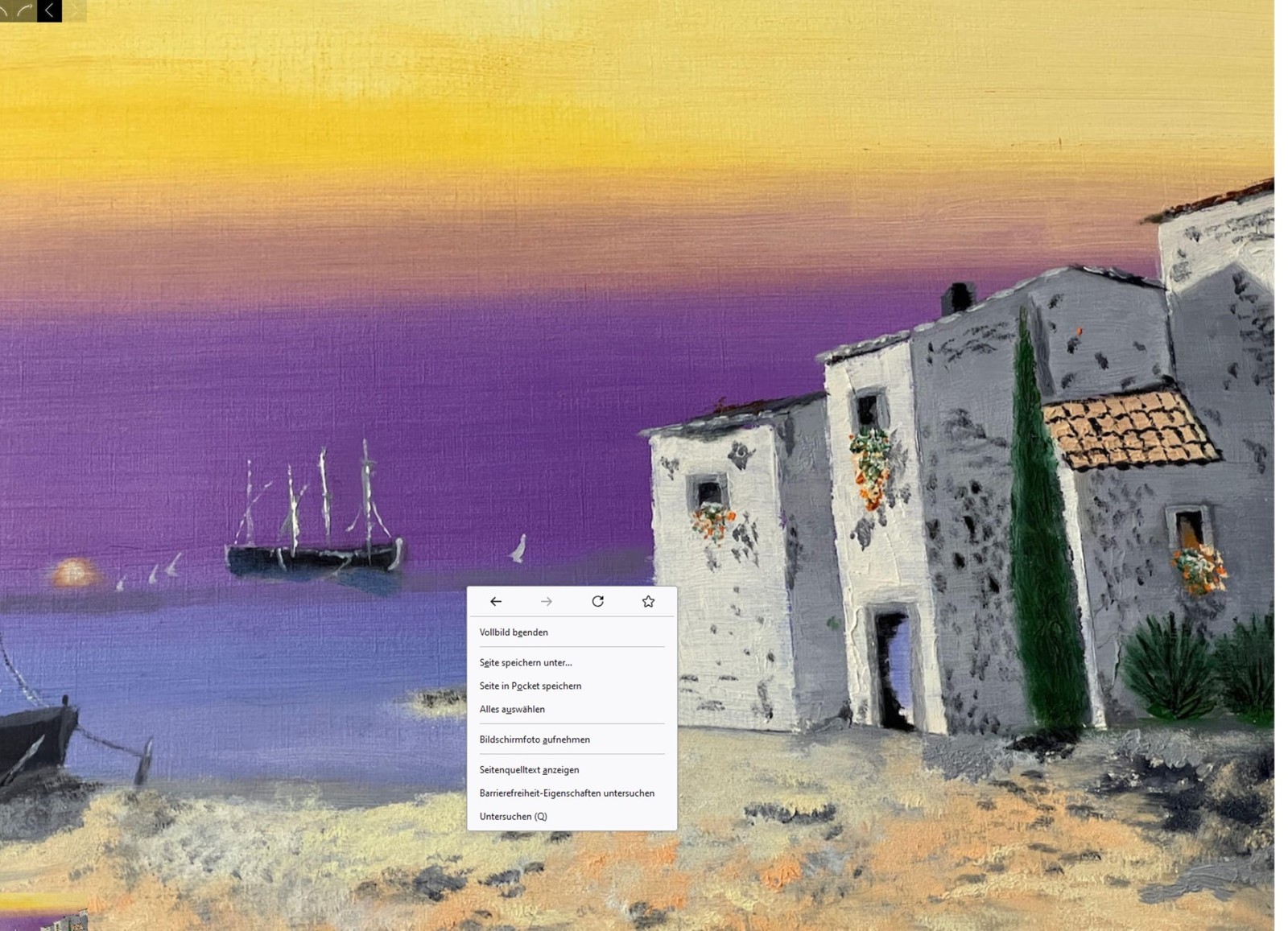 "Sonnenuntergang am Meer in Südeuropa", Öl auf Papier, ungerahmt, ca. 46x61cm