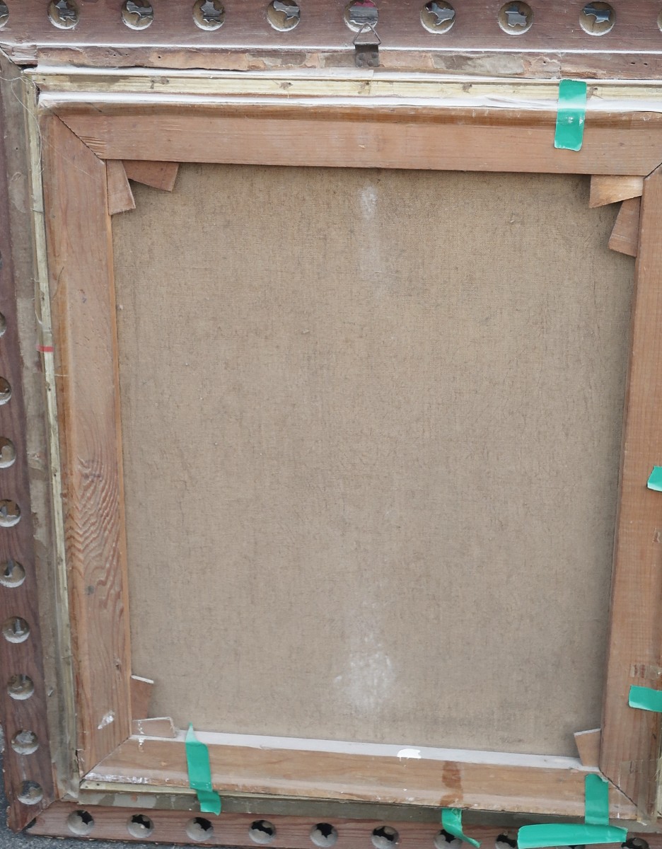 "Stilleben mit Klatschmohn", Öl auf Leinwand, unleserlich signiert, bezeichnet Df für Düsseldorf, datiert 1919, ca. 59, 5 x 49, 5cm, Rahmen beschädigt