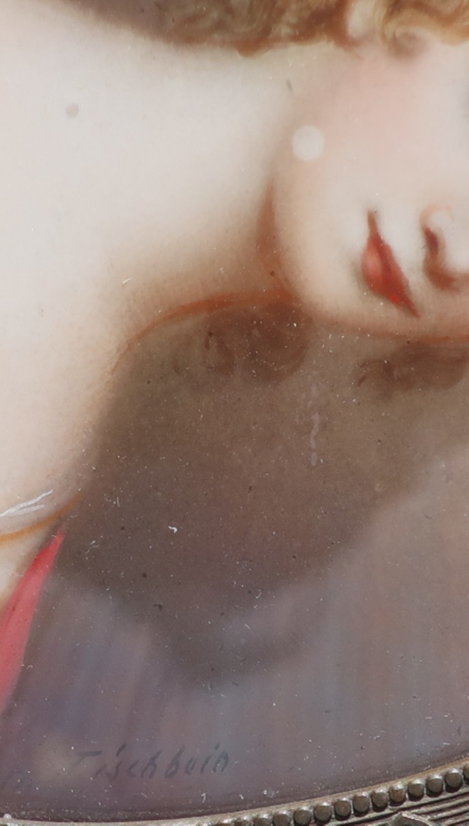 Miniatur "Damenportrait", hinter Glas gerahmt, Rahmenmaß ca. 11 x 9, 2cm, nach Joh. Heinrich Tischbein (1722-1789)