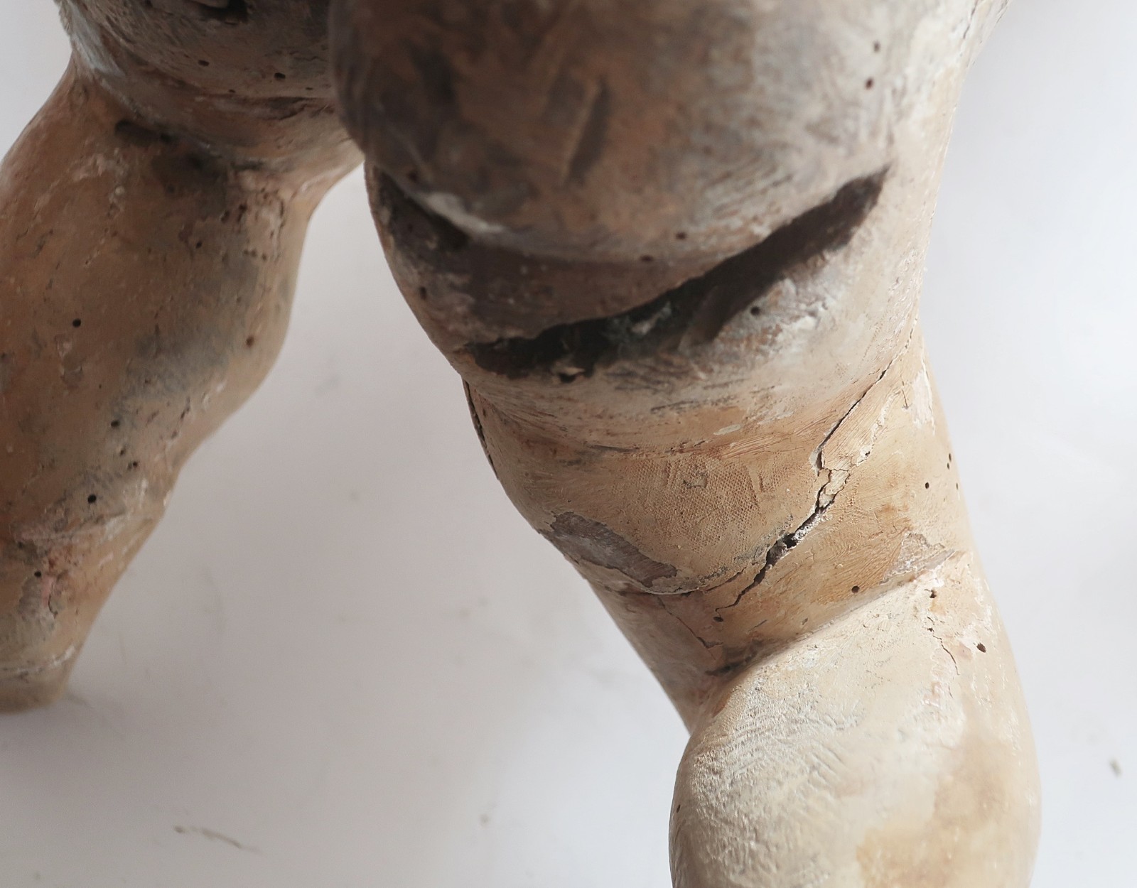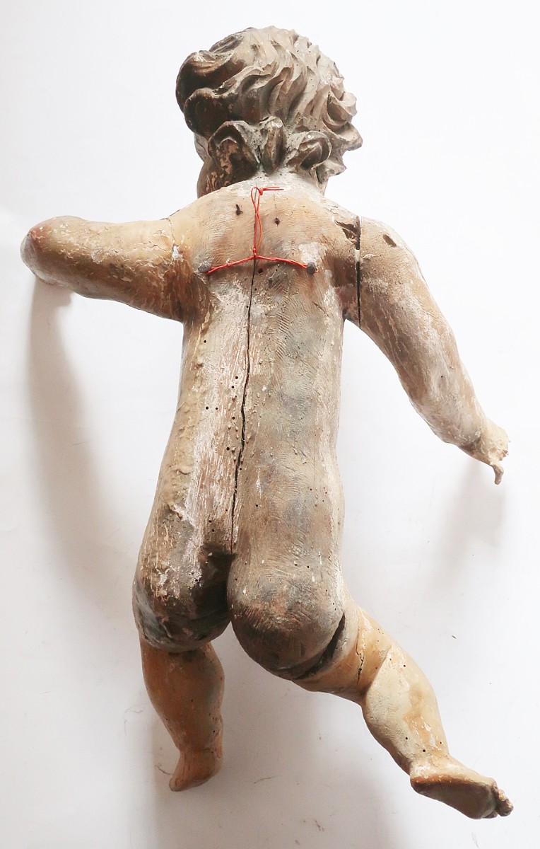 Putto, hand-carved, probably 18th century, parts of the painted version still present, damaged, height approx. 40cm