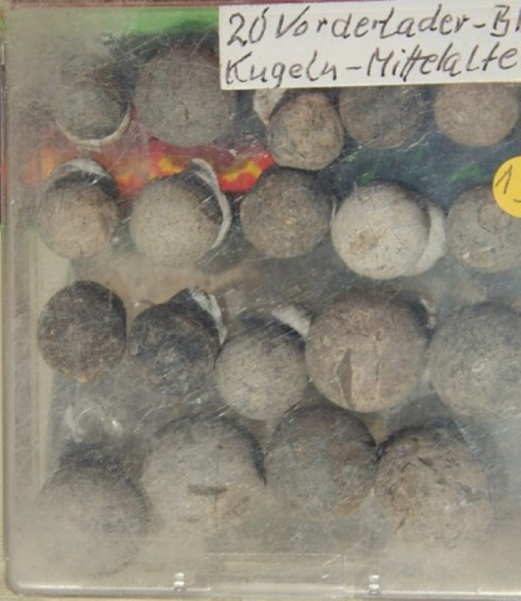 Konvolut 20 Vorderlader-Bleikugeln aus dem Mittelalter, zusammen